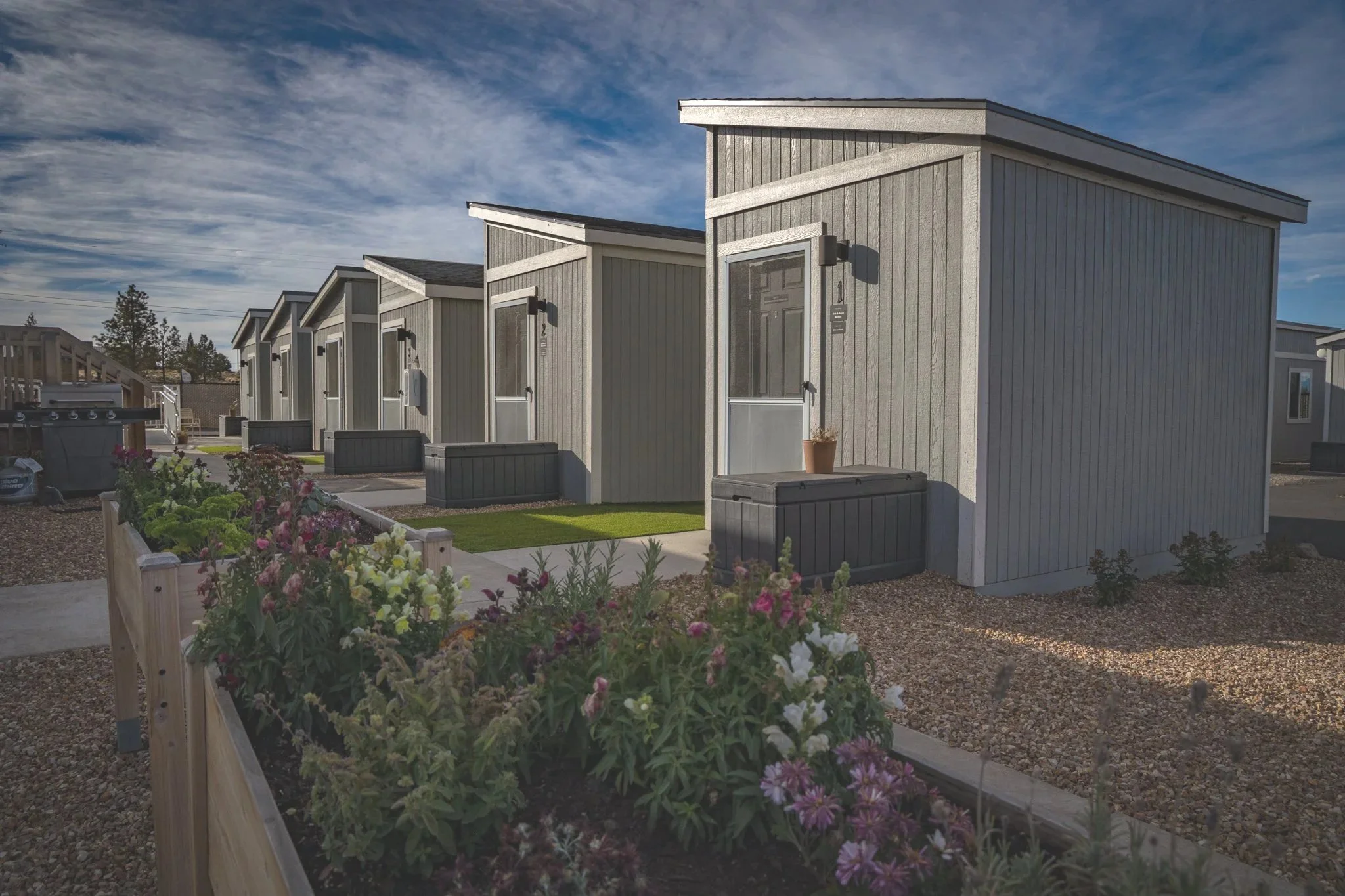 Oasis Village cabins provide our unhoused neighbors in Redmond with security and stability along with access to health and social services as they build their individual path towards stable housing.